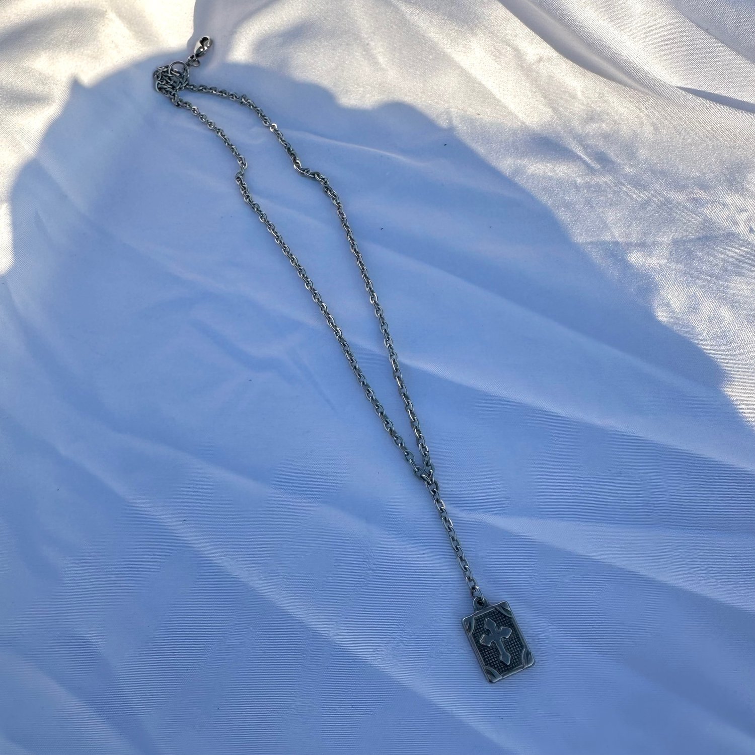 handmade steel chain necklace with a steel cross bible centerpiece