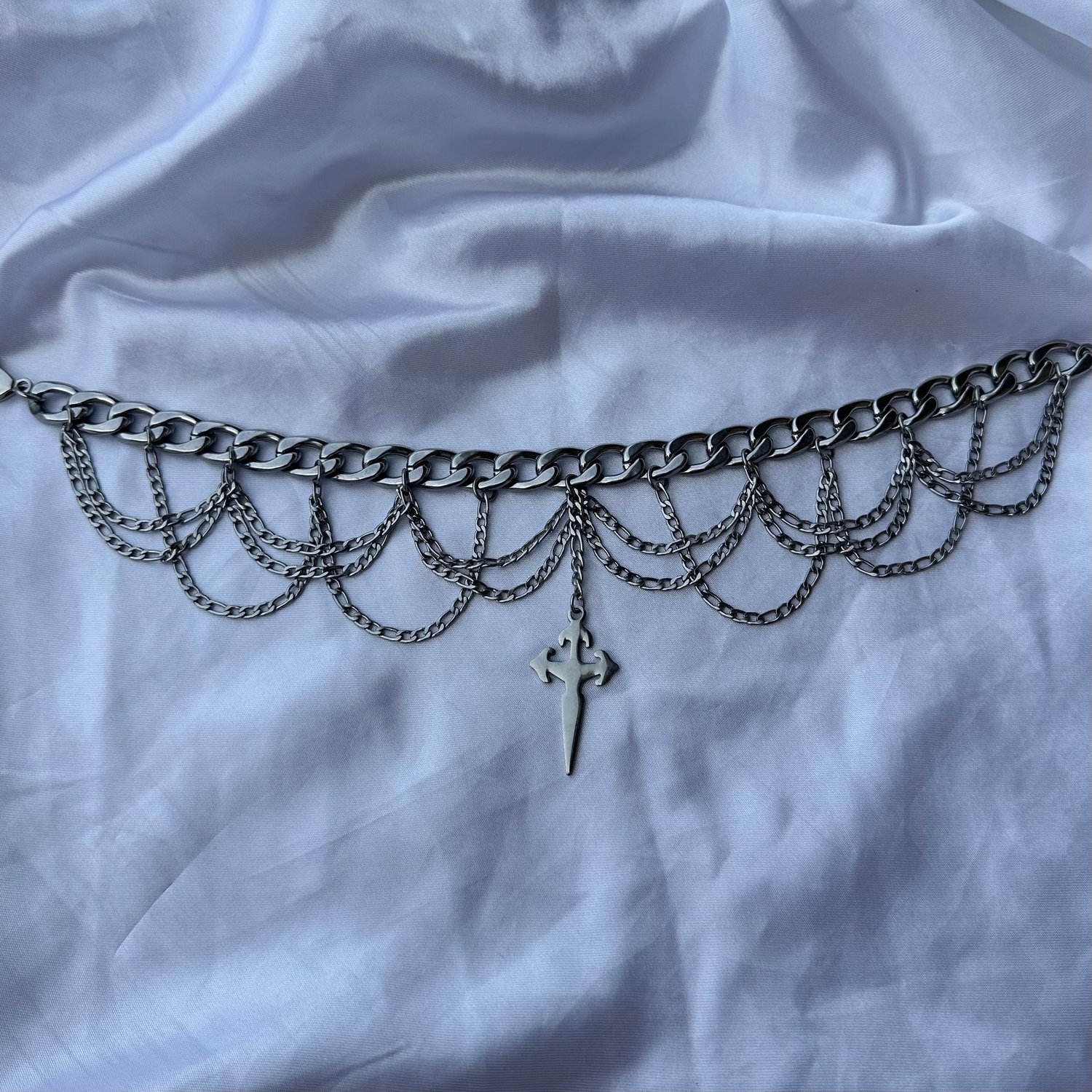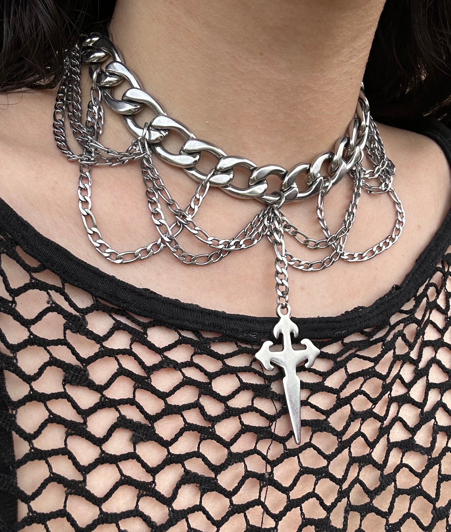 A simple stainless steel chain with a stainless steel pendant