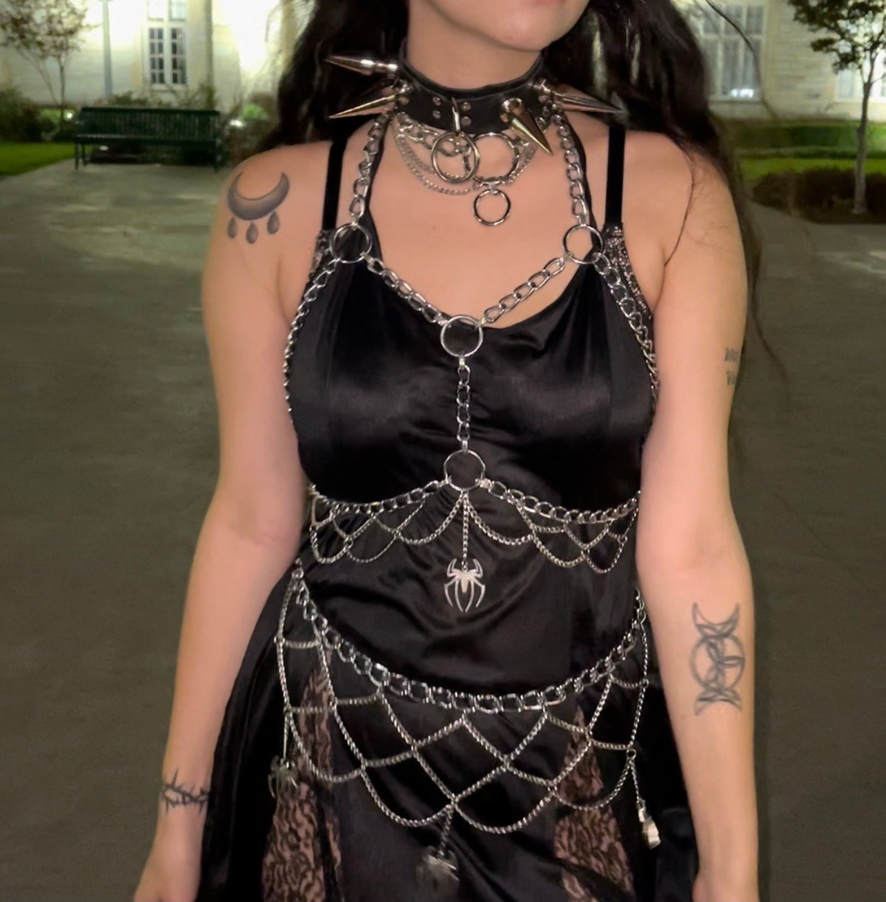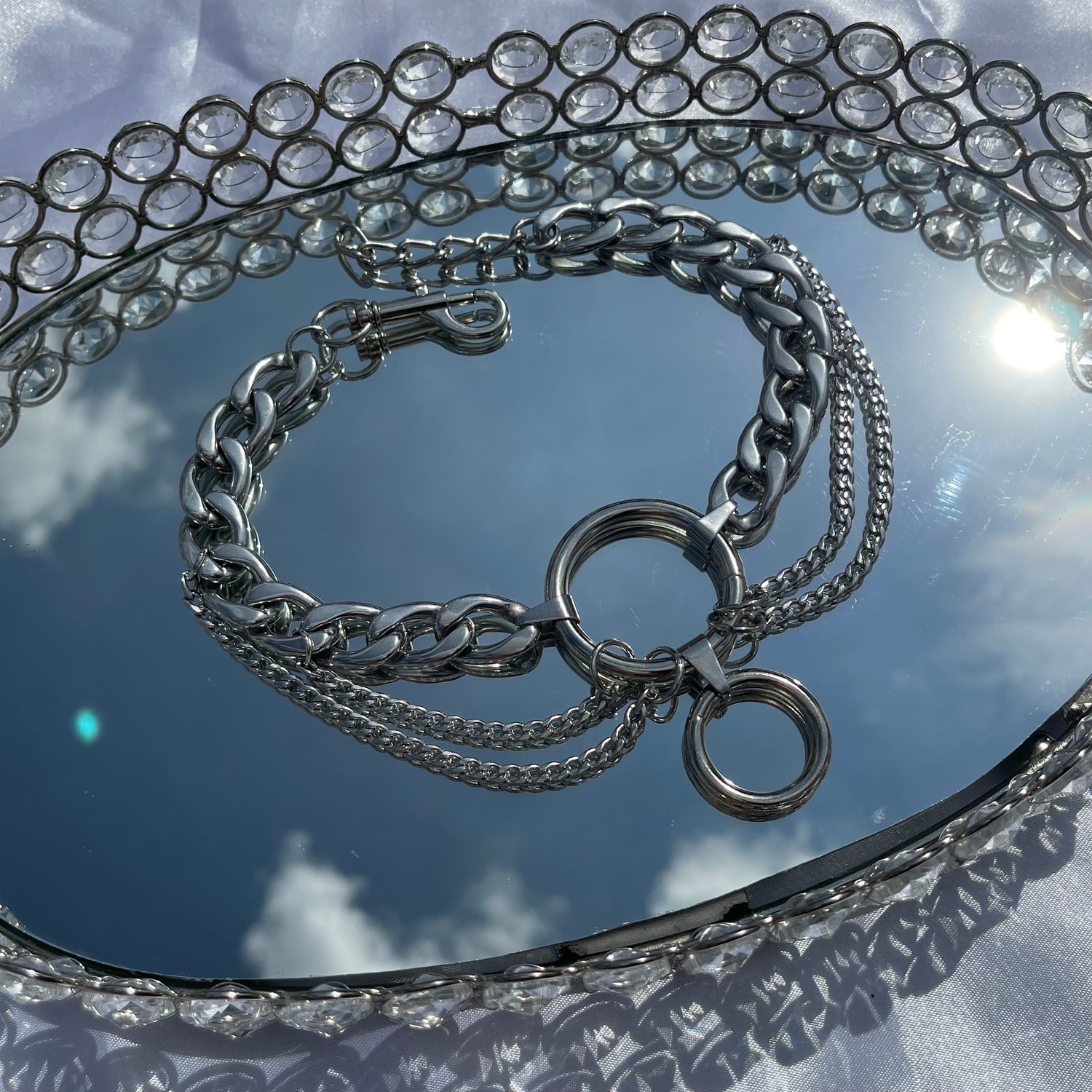 xtra thick stainless steel curb chain choker w o ring centerpiece and hanging chain